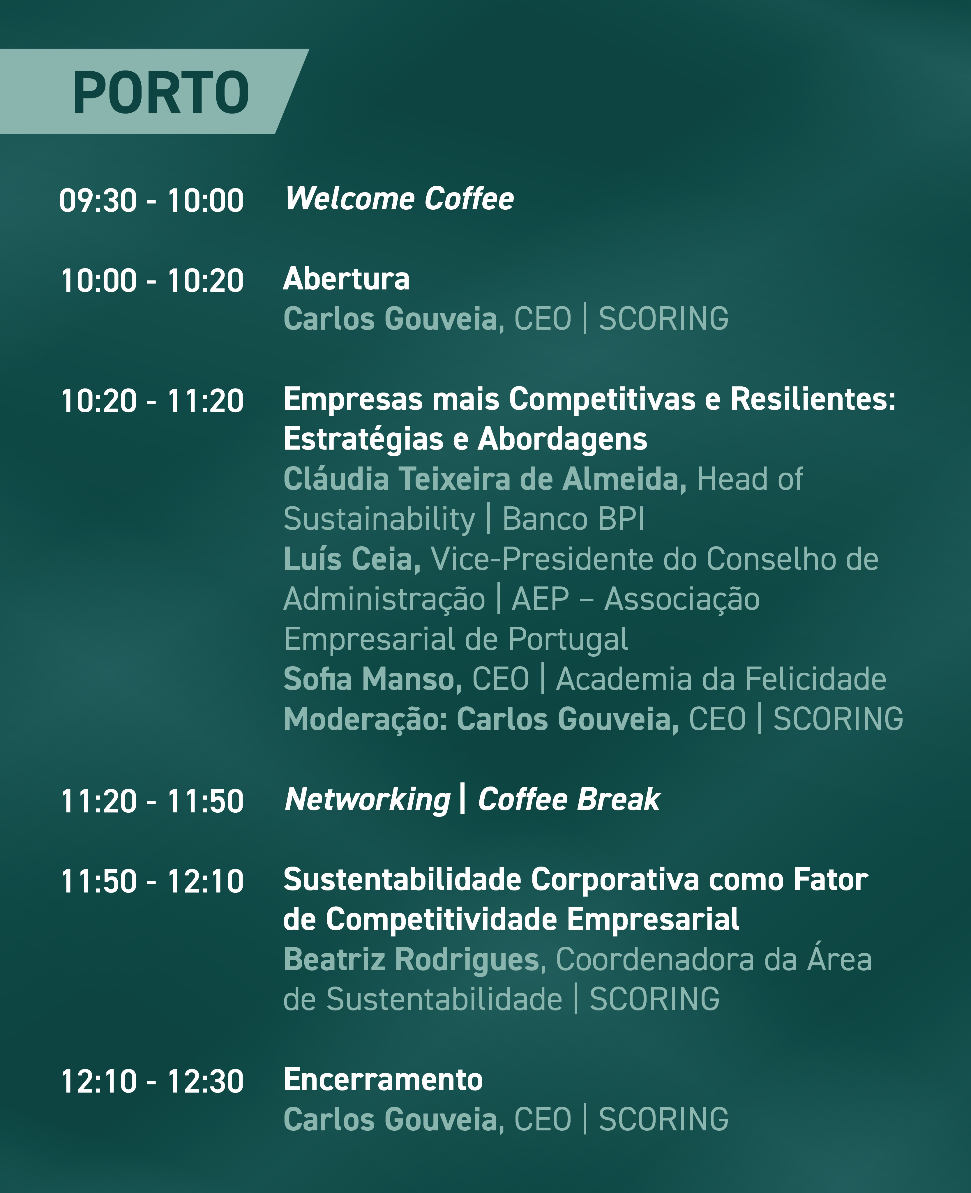 Nas conferências “Os Desafios da Competitividade e Resiliência Empresarial” serão abordados os desafios e as oportunidades associadas à inter-relação entre sustentabilidade financeira, critérios ESG e o bem-estar e felicidade organizacional, analisando o seu papel na definição estratégica das organizações como vetor de promoção da resiliência e da competitividade.