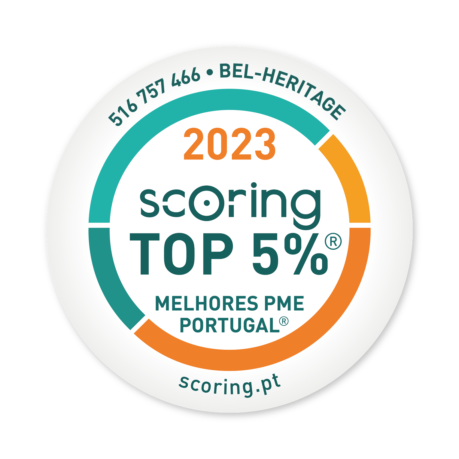 A "BEL-HERITAGE - CONSTRUÇÃO E INTERVENÇÃO NO PATRIMÓNIO, LDA" foi distinguida pela SCORING com a Certificação "TOP 5% MELHORES PME DE PORTUGAL”, edição 2023. A SCORING certifica que a empresa cumpriu os requisitos de acesso à certificação e obteve, de acordo com o método ScorePME e no exercício fiscal de 2022, um Índice de Desempenho e Solidez Financeira superior a 80%, evidenciando ainda consistência nas vertentes económica e financeira, o que só é acessível a menos de 5% das empresas nacionais. Em conformidade, obteve Notação SCORING "EXCELENTE" ("NS 5"), o que lhe confere em termos de sustentabilidade económico-financeira, a distinção “TOP 5% / 2023” atrás referida.