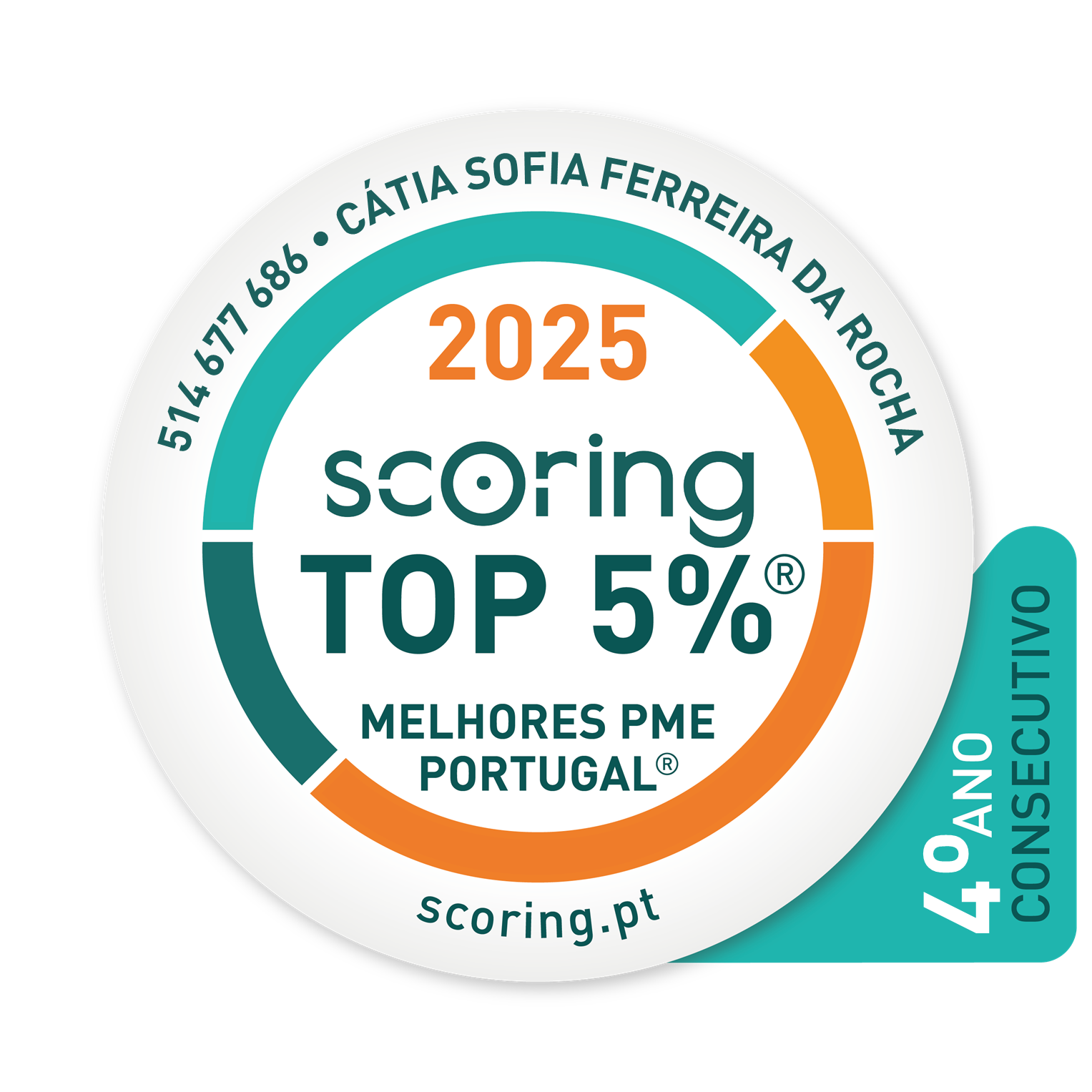A "CATIA SOFIA FERREIRA DA ROCHA, SOCIEDADE UNIPESSOAL, LDA" foi distinguida pela SCORING com a Certificação "TOP 5% MELHORES PME DE PORTUGAL”, edição 2025. A SCORING certifica que a empresa cumpriu os requisitos de acesso à certificação e obteve, de acordo com o método ScorePME e no exercício fiscal de 2024, um Índice de Desempenho e Solidez Financeira superior a 80%, evidenciando ainda consistência nas vertentes económica e financeira, o que só é acessível a menos de 5% das empresas nacionais. Em conformidade, obteve Notação SCORING "EXCELENTE" ("NS 5"), o que lhe confere em termos de sustentabilidade económico-financeira, a distinção “TOP 5% / 2025” atrás referida.