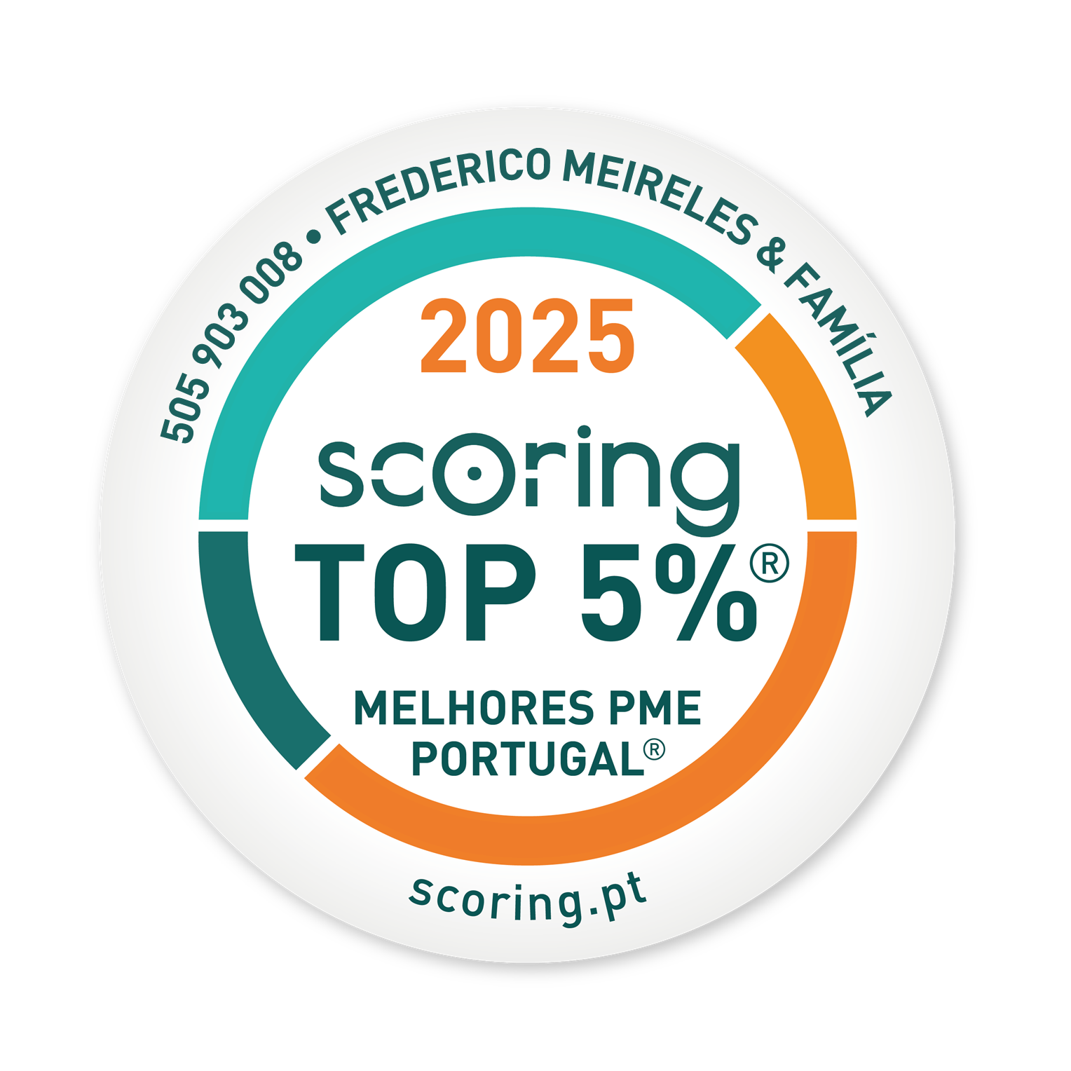 A "FREDERICO MEIRELES & FAMÍLIA, LDA" foi distinguida pela SCORING com a Certificação "TOP 5% MELHORES PME DE PORTUGAL”, edição 2025. A SCORING certifica que a empresa cumpriu os requisitos de acesso à certificação e obteve, de acordo com o método ScorePME e no exercício fiscal de 2024, um Índice de Desempenho e Solidez Financeira superior a 80%, evidenciando ainda consistência nas vertentes económica e financeira, o que só é acessível a menos de 5% das empresas nacionais. Em conformidade, obteve Notação SCORING "EXCELENTE" ("NS 5"), o que lhe confere em termos de sustentabilidade económico-financeira, a distinção “TOP 5% / 2025” atrás referida.