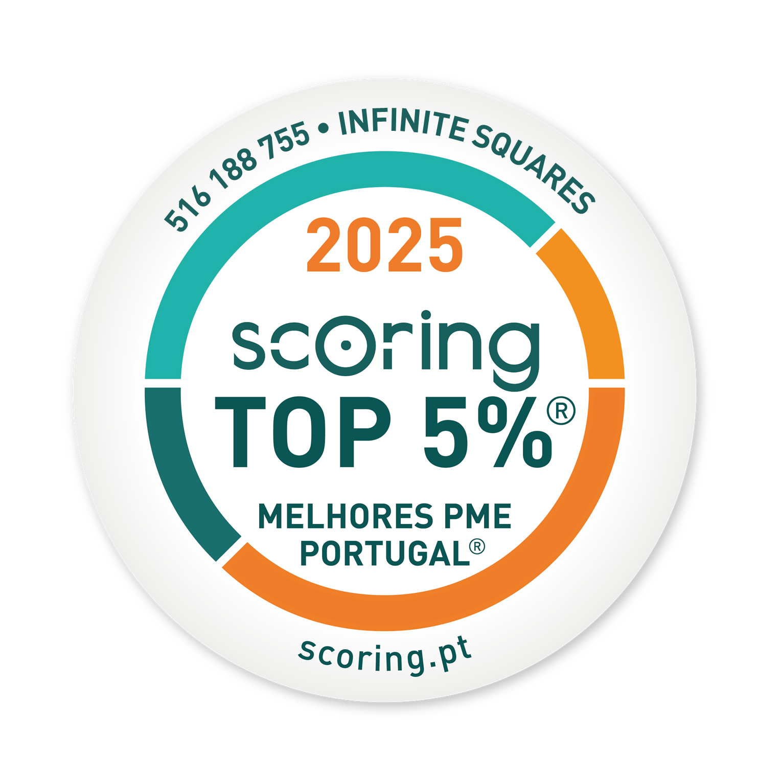 A "INFINITE SQUARES, LDA" foi distinguida pela SCORING com a Certificação "TOP 5% MELHORES PME DE PORTUGAL”, edição 2025. A SCORING certifica que a empresa cumpriu os requisitos de acesso à certificação e obteve, de acordo com o método ScorePME e no exercício fiscal de 2024, um Índice de Desempenho e Solidez Financeira superior a 80%, evidenciando ainda consistência nas vertentes económica e financeira, o que só é acessível a menos de 5% das empresas nacionais. Em conformidade, obteve Notação SCORING "EXCELENTE" ("NS 5"), o que lhe confere em termos de sustentabilidade económico-financeira, a distinção “TOP 5% / 2025” atrás referida.