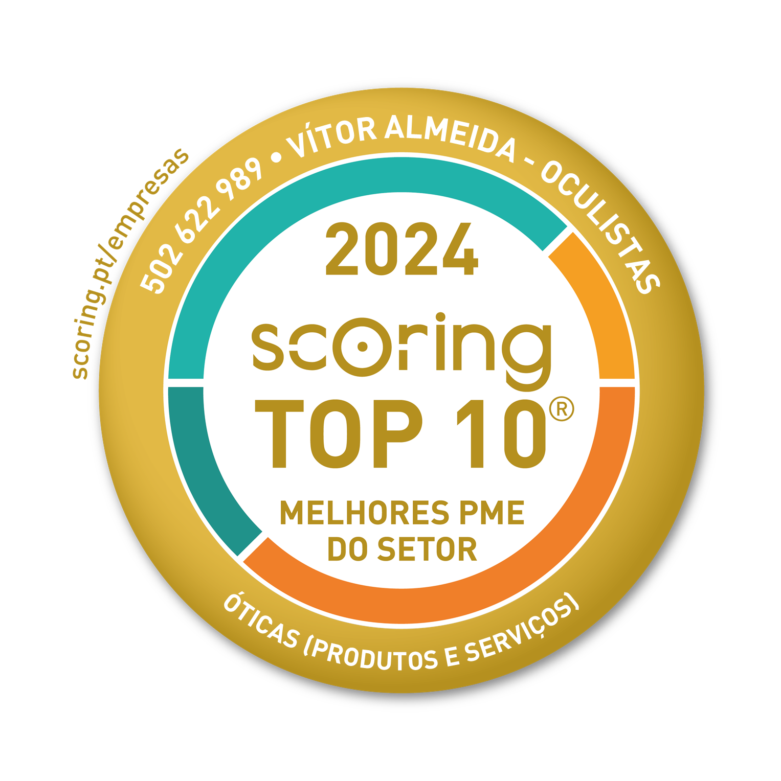 A "VÍTOR ALMEIDA - OCULISTAS, LDA" é uma empresa TOP 10 Melhores PME do Setor 2024, porque alia notação máxima de desempenho e solidez financeira a um volume de negócios relevante no setor. Por isso, é uma empresa que se afirma como uma referência de confiança, solidez e futuro no setor Óticas (produtos e serviços). A classificação foi obtida através de um processo de participação transparente, cientificamente validado e auditado por entidades independentes. Resultado: SCORING TOP 10 Melhores PME do Setor / da Região é a mais seletiva e completa distinção no domínio económico-financeiro, em Portugal.